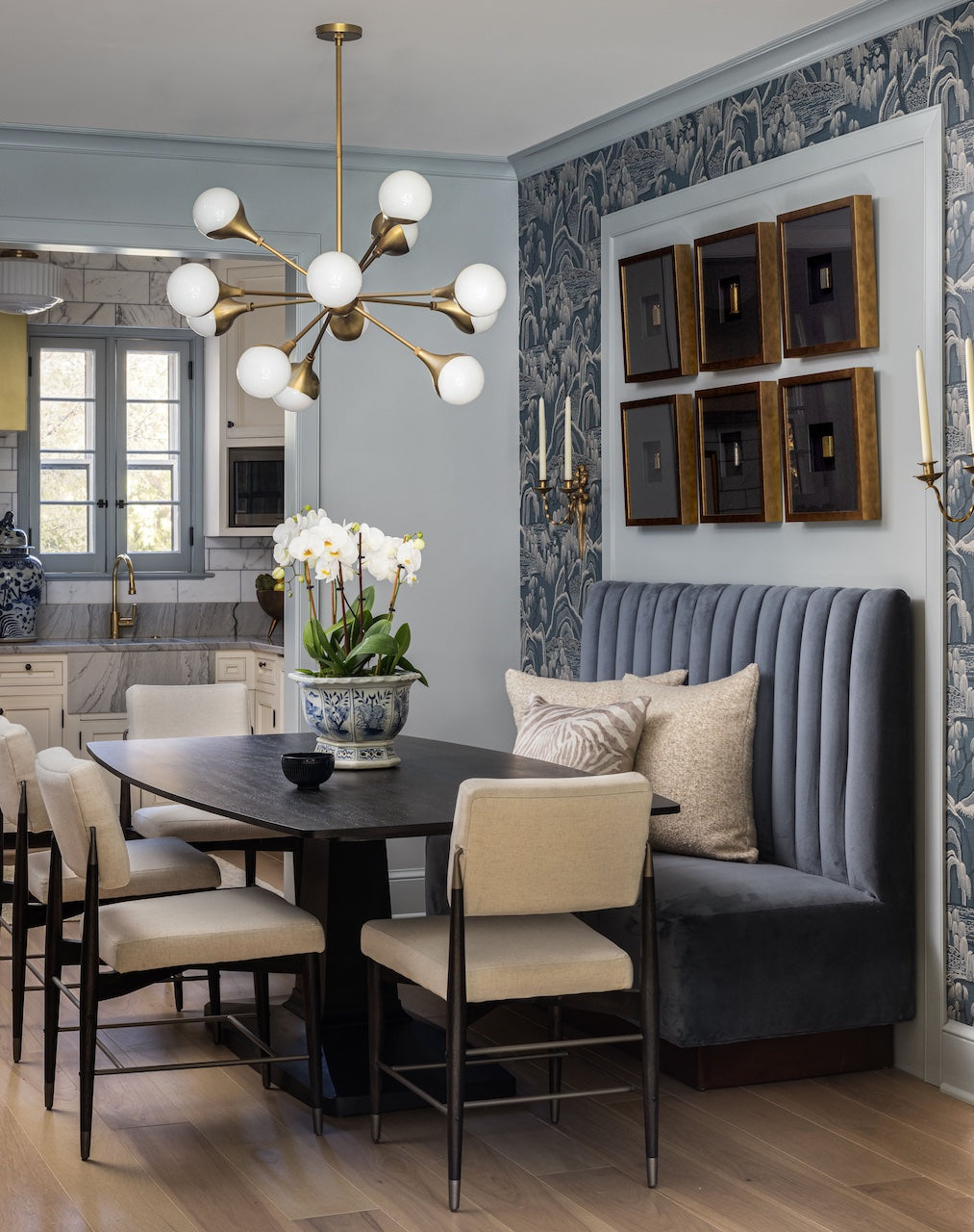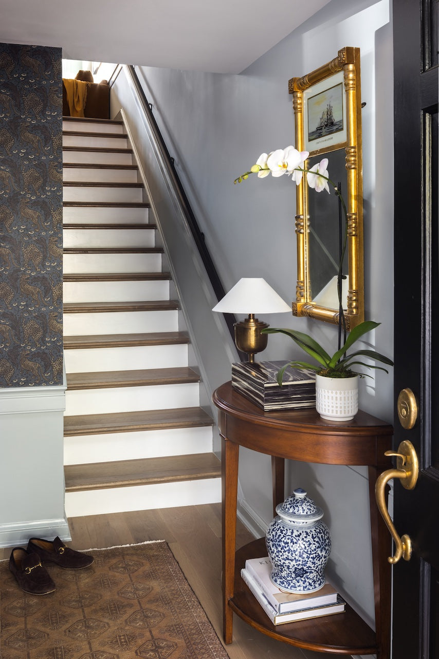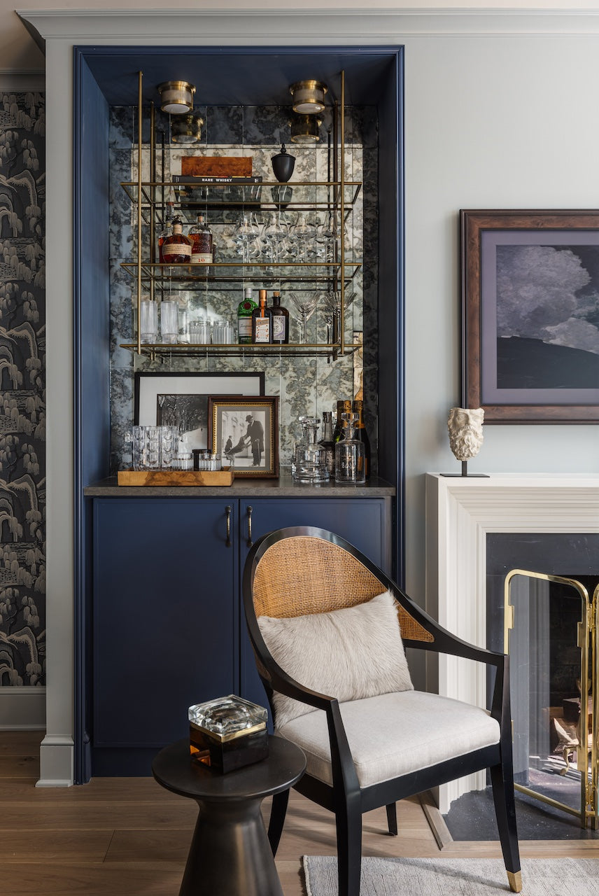 As we embarked on the transformation of this sophisticated client's townhome, our guiding vision was to create an elegant retreat that exudes warmth and style, perfect for gatherings with friends and family. Drawing inspiration from the home’s classic architecture, we integrated elements that speak to both refinement and comfort. Central to the design is a seamless blend of modern and traditional aesthetics. The focal point of the main room, an intricately designed bar, hints at a bygone era of sophistication. Every design choice was made to reflect the client’s cultured sensibility and his desire for a home that is both a personal sanctuary and a lively social space. Mementos from the client’s collection are thoughtfully placed, each telling a story and adding depth to the overall decor. Through careful curation and a keen eye for detail, we have crafted a space that is as elegant as it is welcoming—a true reflection of the client's lifestyle and tastes.