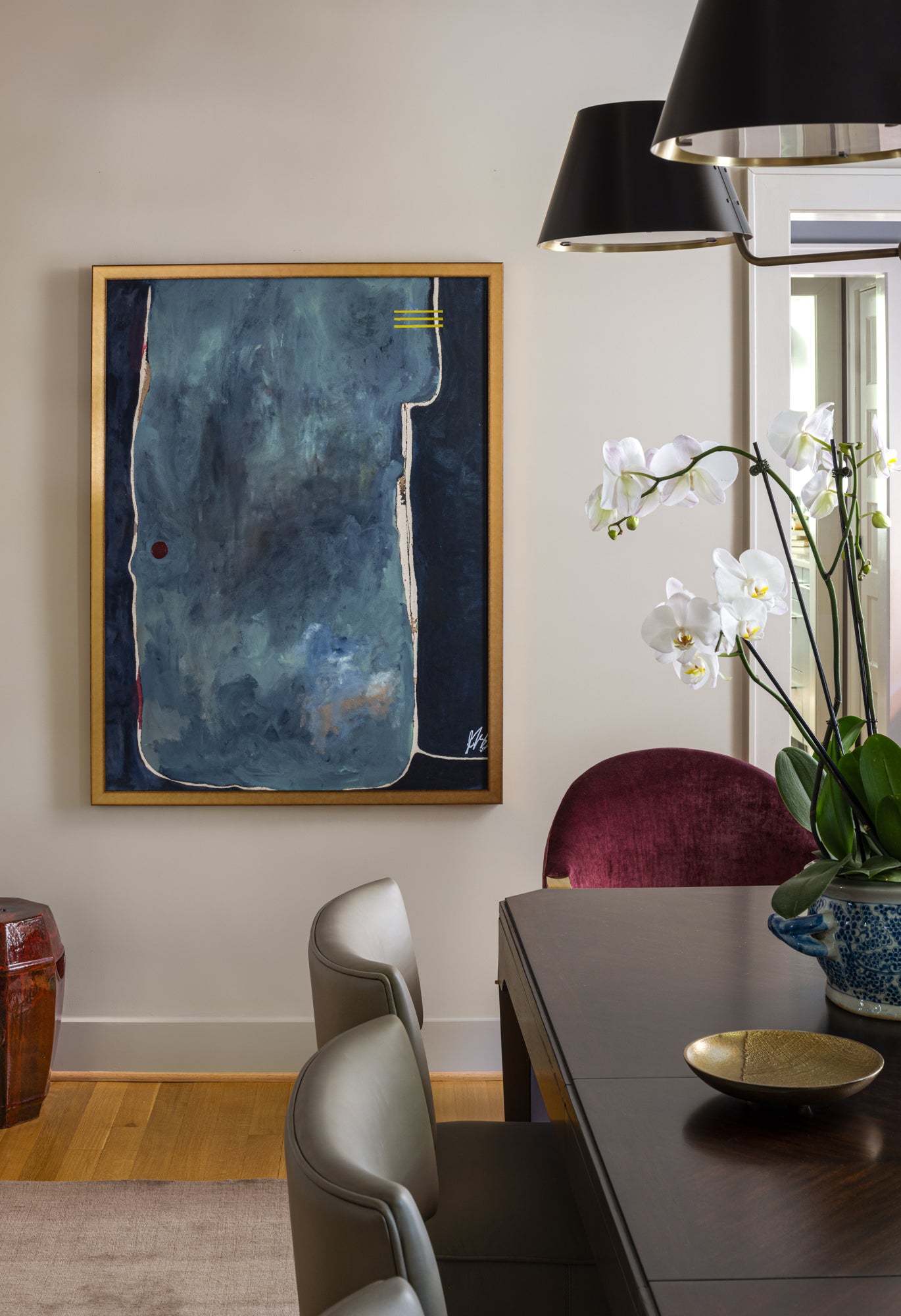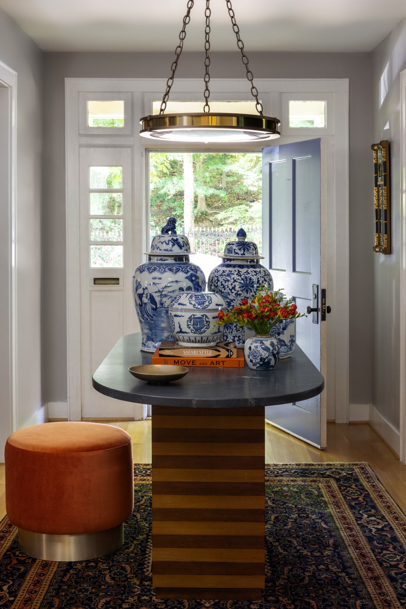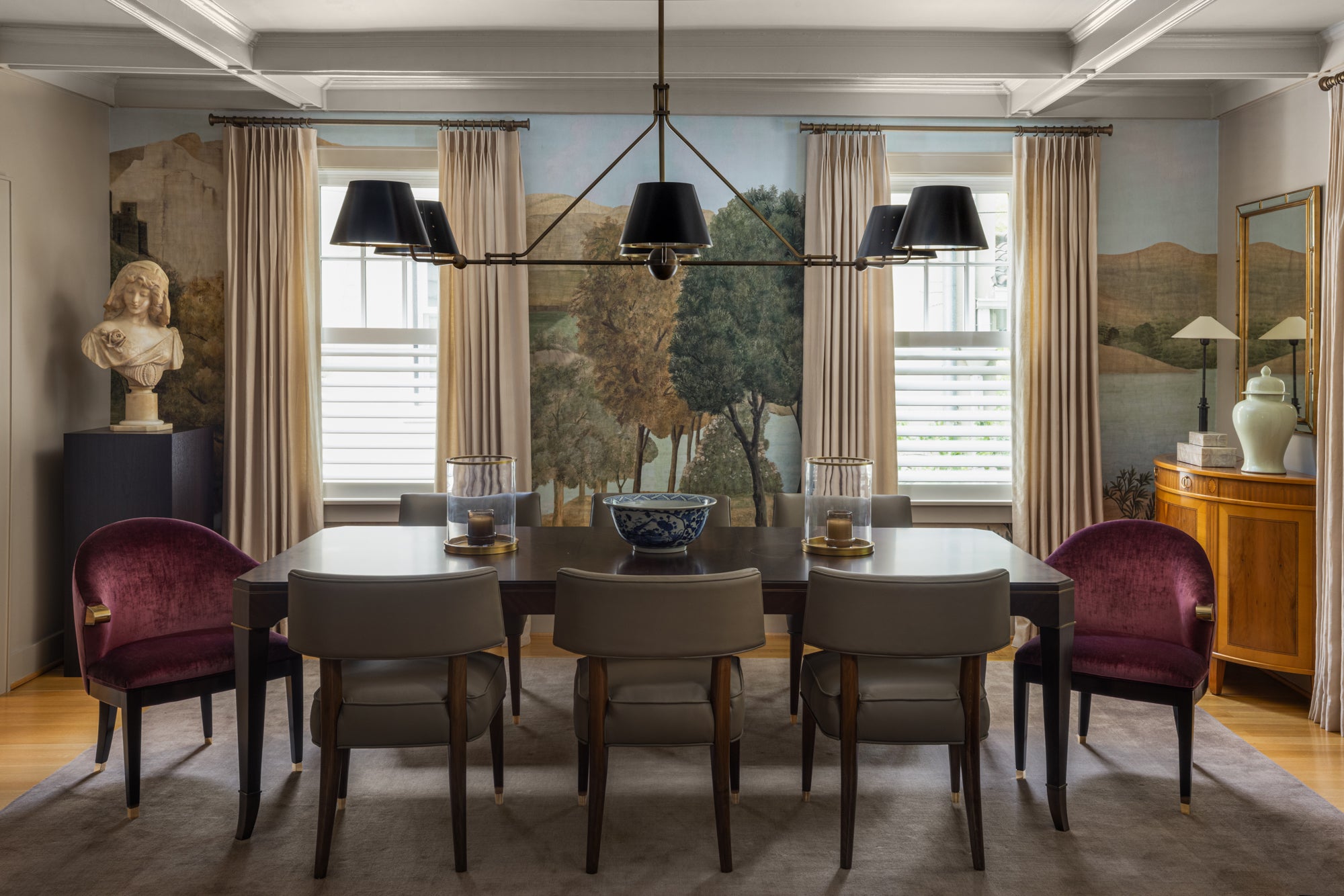 Nestled in the charming Cleveland Park neighborhood of Washington, D.C., this newly renovated home effortlessly combines classic elegance with modern sophistication. Inspired by the client, the design embraces the home's original architecture while creating a vibrant space for a growing family to entertain and make memories. At the heart of this transformation lies the stunning dining room, where a breathtaking mural sets a sophisticated tone, inviting guests to linger over meals and conversations. Special moments, like the jewel-box powder room with its Art Nouveau wallpaper and marble sink, punctuate the design. This home is not just a place to live; it's a canvas of cherished memories and future gatherings, where family and friends can come together.