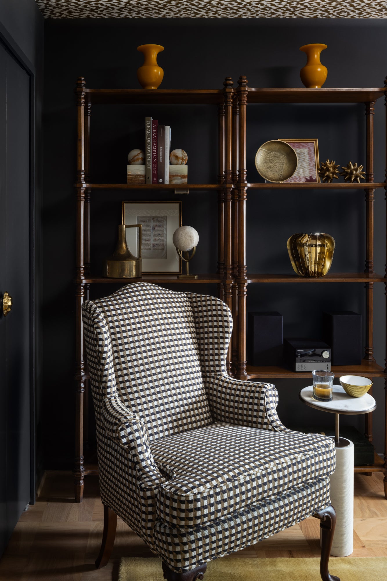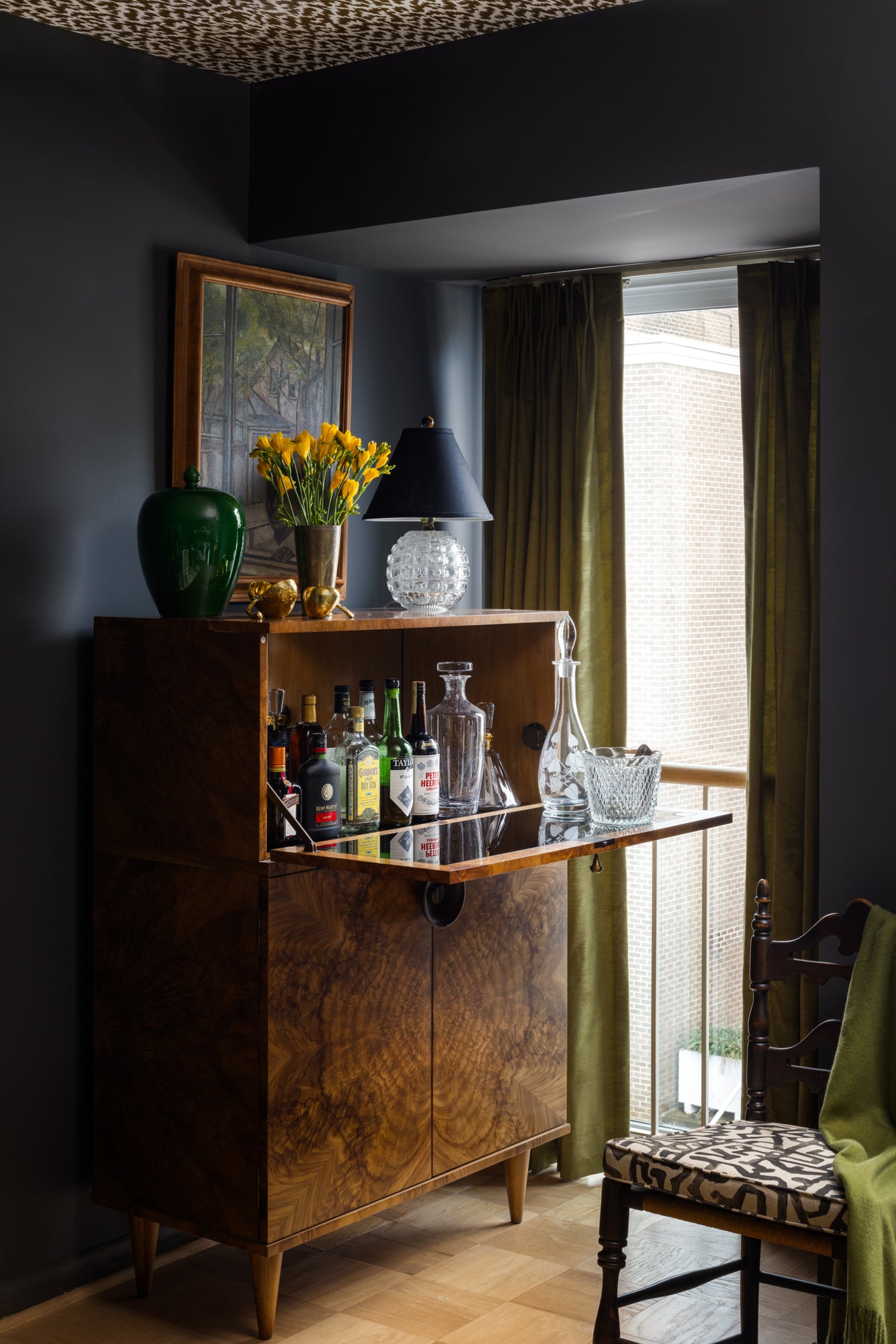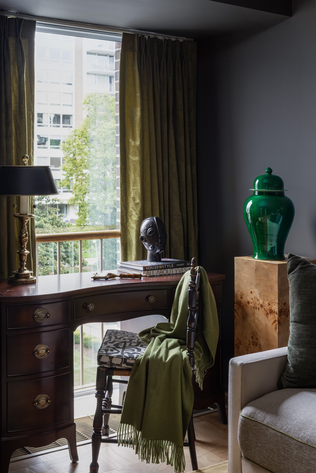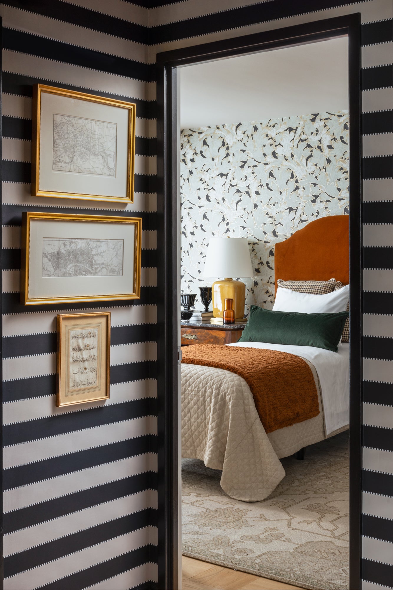 For this condo by the wharf, we crafted a curated, collected atmosphere reflecting the client’s rich history. The deep navy living area provides a sophisticated backdrop for vintage accents and a splash of green, while bold stripes in the hallway create a striking art gallery vibe. Each element tells a story—collectively transforming the condo into a personal sanctuary that echoes the client's adventures and cherished memories. This bespoke approach allows us to craft a home that is not only visually stunning but resonates deeply with the vibrant history of its owner.